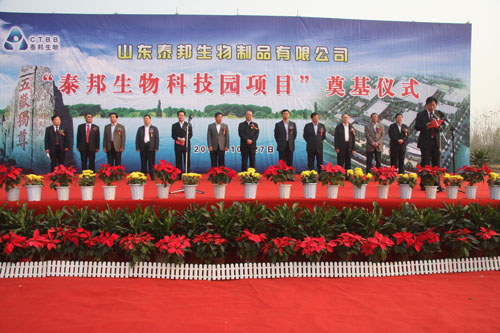 2012年10月27日上午,泰邦生物科技園在泰安高新區天頤湖北臨開(kāi)工奠基,市委書(shū)記、市人大常委會(huì )主任李洪峰,市委副書(shū)記、市長(cháng)王云鵬,市委副書(shū)記李琥,市人大常委會(huì )黨組書(shū)記、第一副主任林華勇,市委常委、副市長(cháng)辛顯明,市委常委、秘書(shū)長(cháng)陳剛,市委常委、組織部長(cháng)陳平,市政協(xié)副主席宋魯,泰邦生物集團董事局主席高小英表示祝賀。